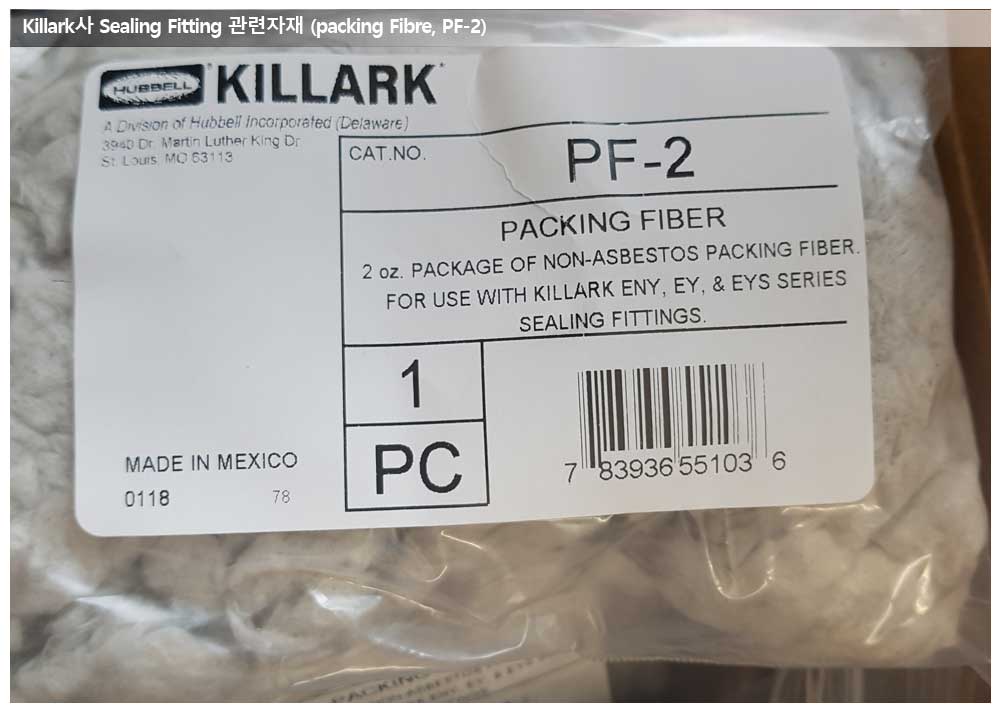 또한 Seal Fitting이 UL 인증을 받을때에는 제조사에서 인증한 제품을 사용해야 UL 인증이 유지되기 때문에 Seal Fitting을 구매하실 경우에는 해당 필수 구성품이라 할 수 있는 Compound와 Packing Fiber를 함께 구매하셔야 합니다.