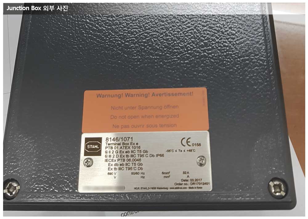 현대중공업, NASR프로젝트, R.STAHL사 Junction Box 페이지 정보 작성자 관리자 작성일17-04-24 14:55 조회19,109회 댓글0건 관련링크 이전글 다음글 목록 본문 공급품목 : R.STAHL JUNCTION BOX 상세사양 : 8146/1041, 8146/1051, 8146/1071 모델 특이 사항 : R.STAHL 의 국내 Workshop에서 가공하여 납기가 종전보다 4~6주정도 단축되었습니다. 댓글목록 등록된 댓글이 없습니다. 이전글 다음글 목록